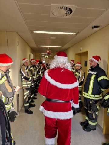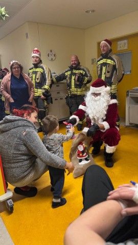 | Nikolausaktion auf der Kinderstation der Spreewaldklinik Lübben: Feuerwehr bringt vorweihnachtliche Freude. |