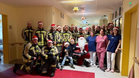 Nikolausaktion auf der Kinderstation der Spreewaldklinik Lübben: Feuerwehr bringt vorweihnachtliche Freude.